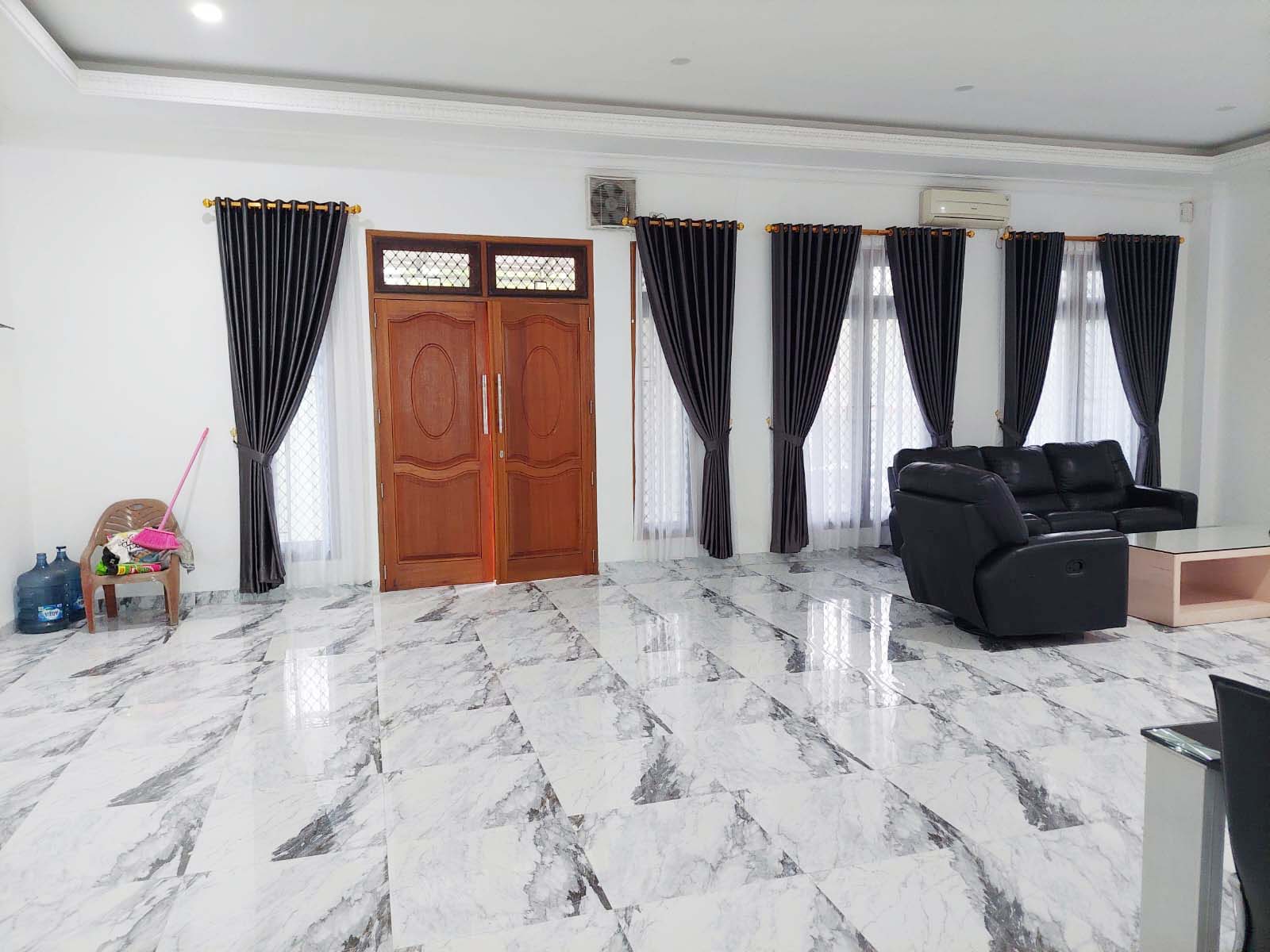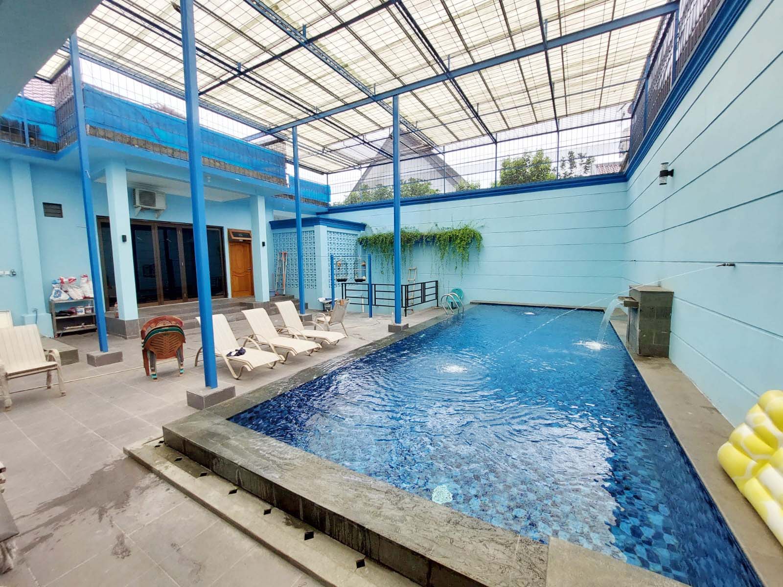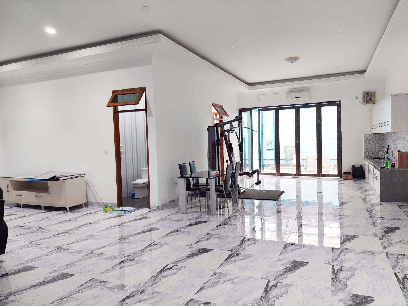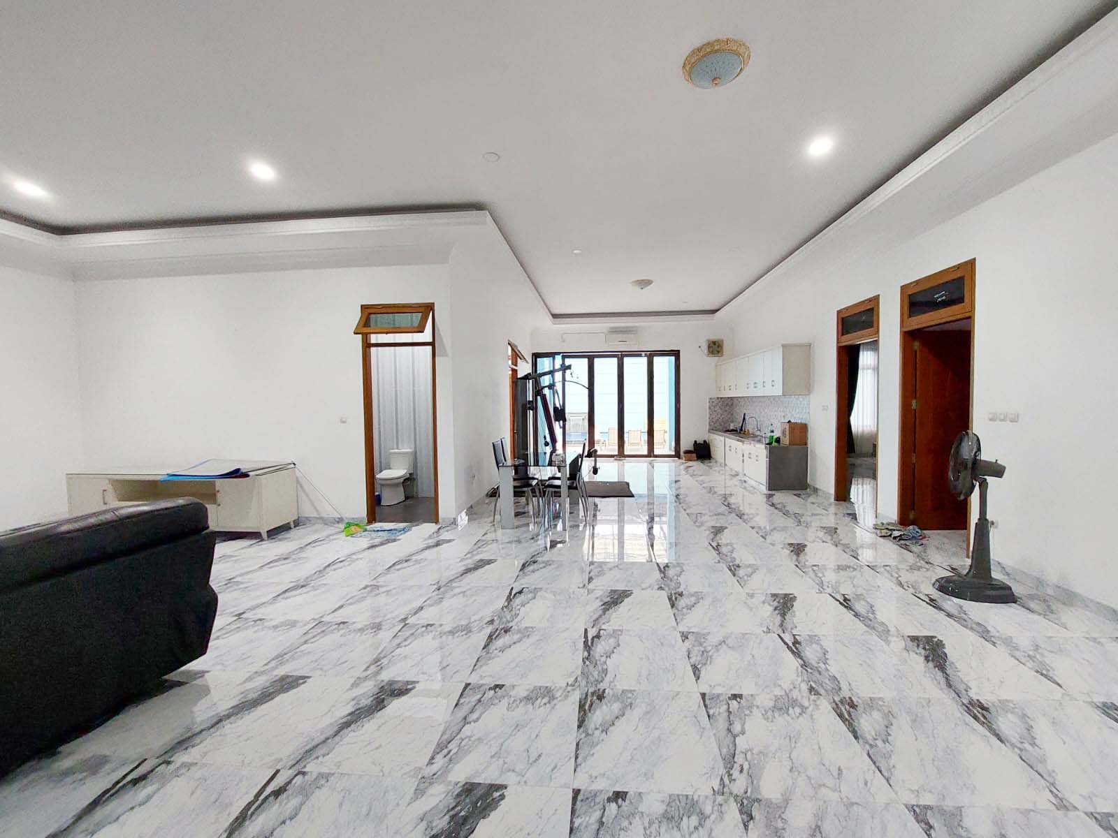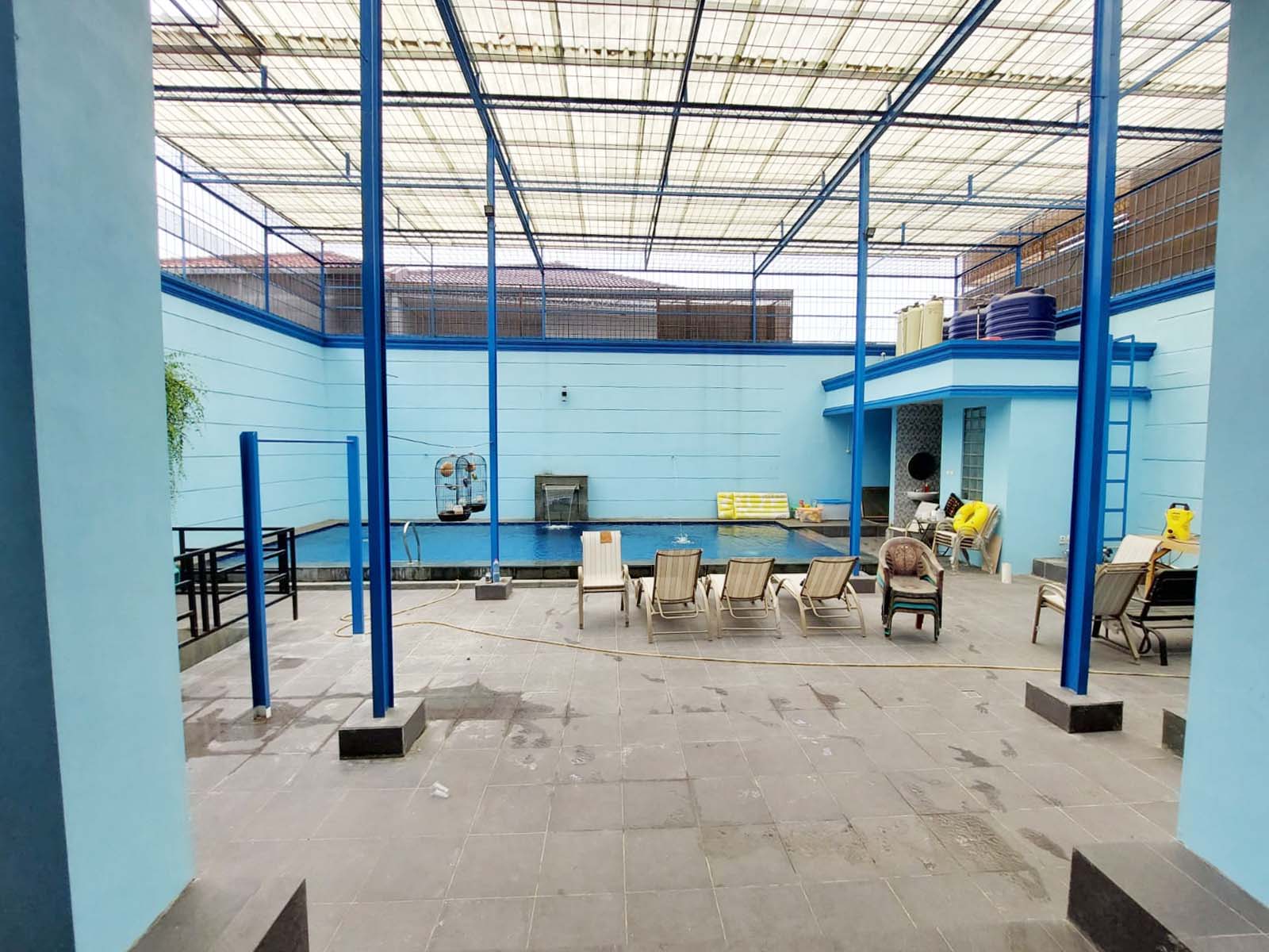 Unfurnished, ruang keluarga, dapur kotor, air jetpump, swimming pool