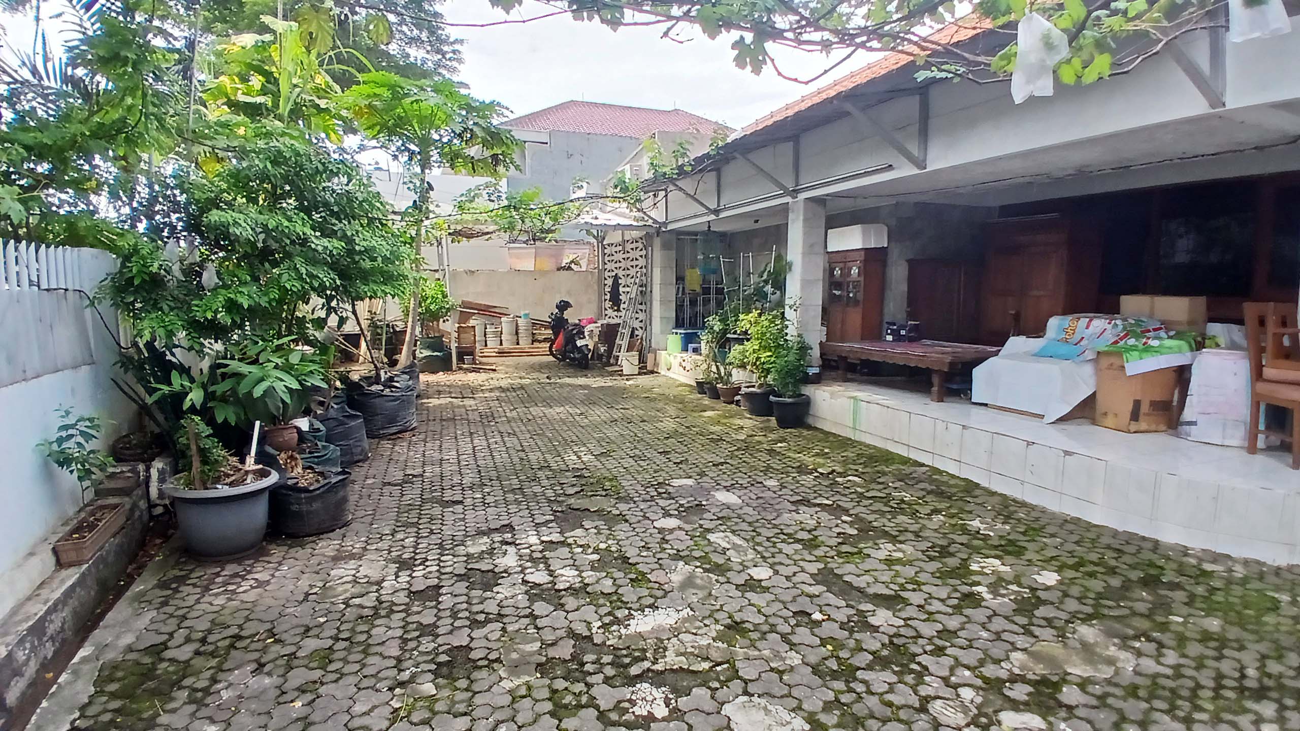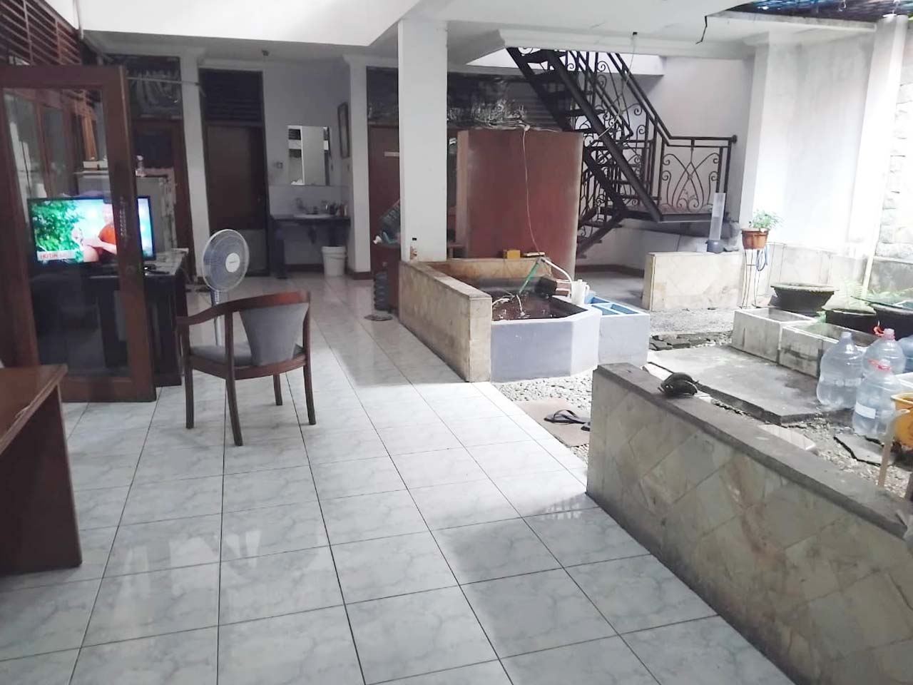 Unfurnished, ruang keluarga, dapur kotor, halaman luas, air jetpump