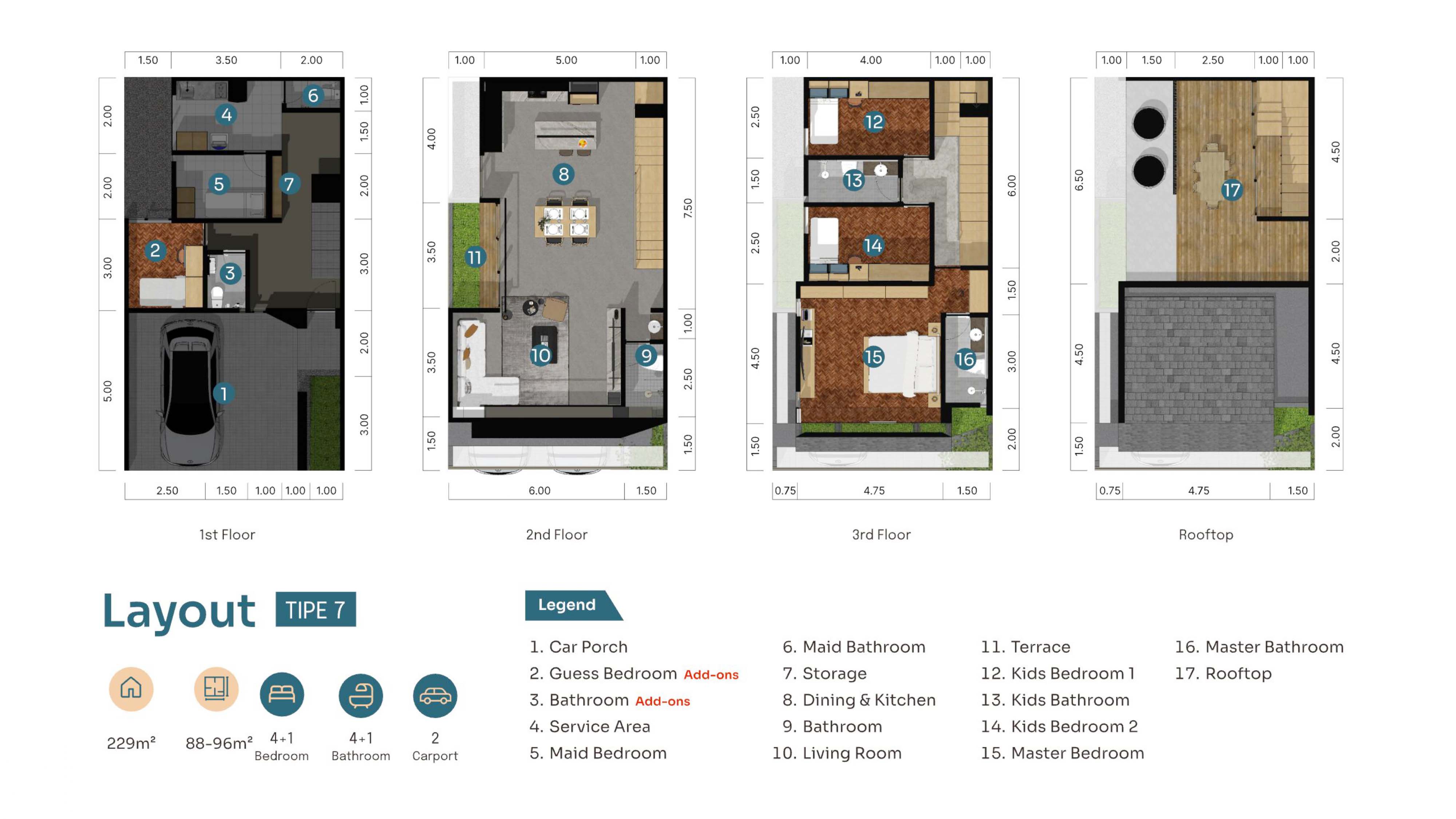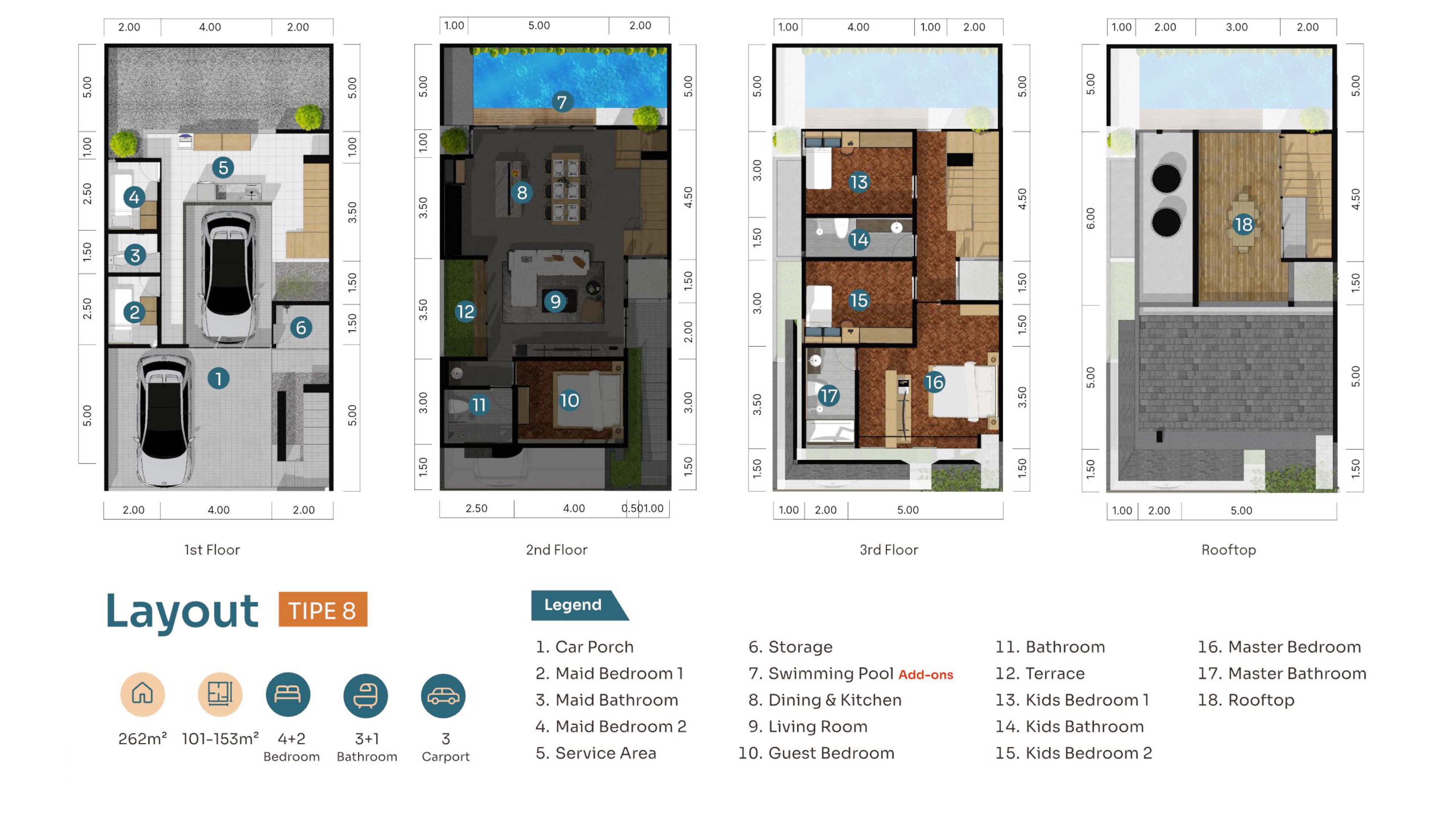 Harga & spek yang tertera untuk unit dengan type 7, sedangkan untuk type 8 harga mulai dari Rp 6,630 M s/d Rp 7,313 M (LT mulai dari 133m² s/d 155m² dengan LB : 260m²), lokasi strategis, dekat TB Simatupang, Kemang, Pejaten, Sekolah Internasional AIS & Mall Pejaten
