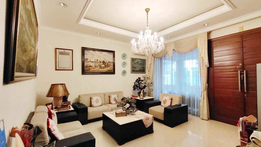 Unfurnished, lantai marmer, 9 unit ac, ruang keluarga, dapur bersih, gudang, air jetpump, swimming p