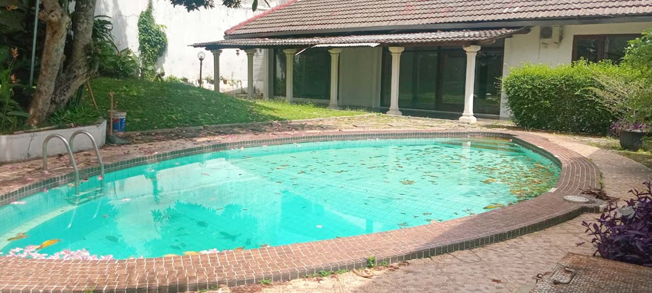 Ruang keluarga, dapur bersih/kotor, taman depan & belakang, air jetpump, swimming pool