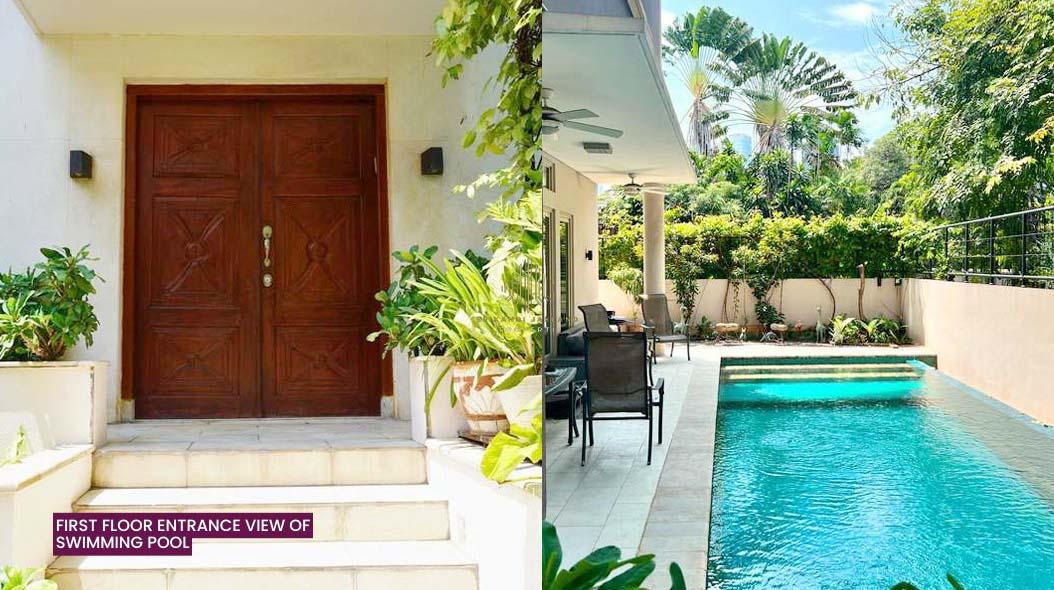 Lantai granite, 5 unit ac, ruang keluarga, dapur bersih/kotor, air jetpump, swimming pool