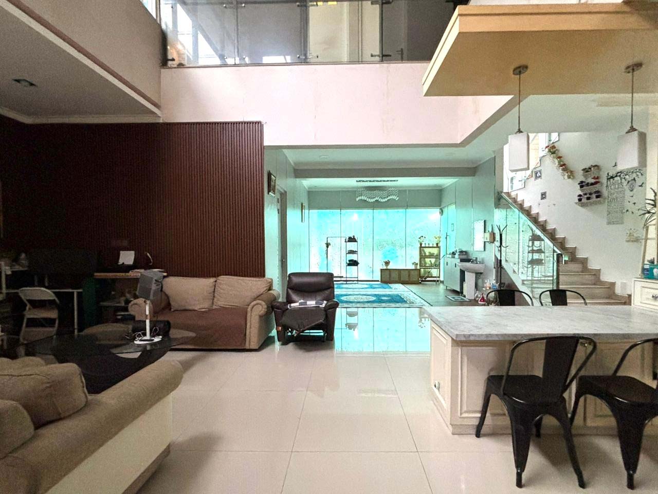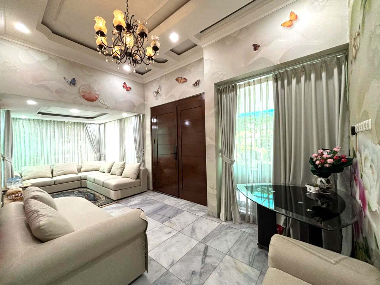 Fully furnished, ruang keluarga, dapur bersih/kotor, air jetpump, solar water heather