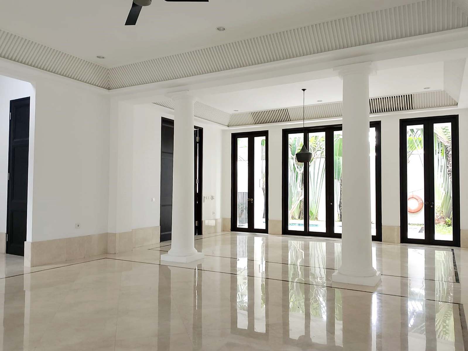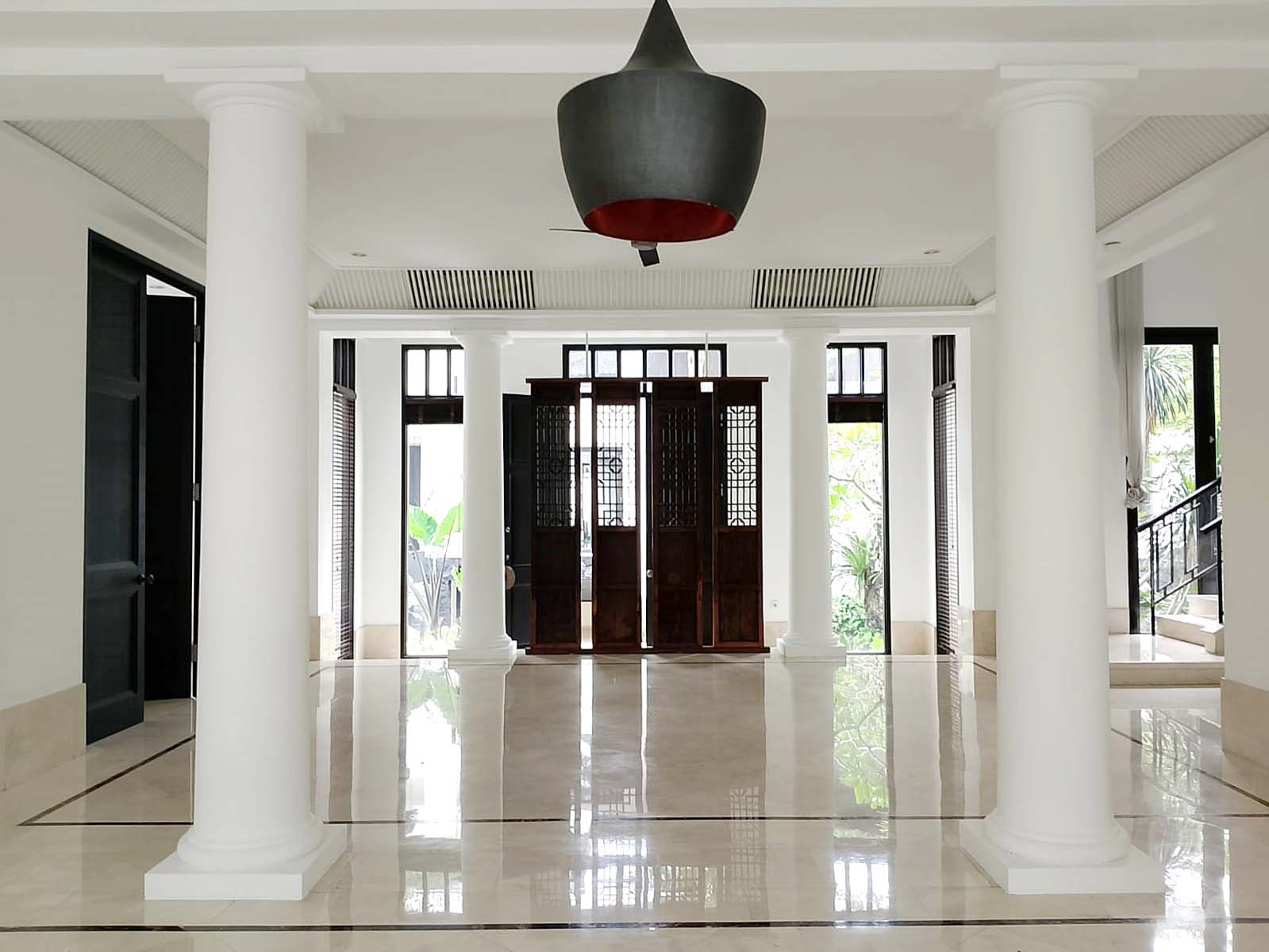 Ruang keluarga, dapur bersih/kotor, air jetpump, swimming pool, gym