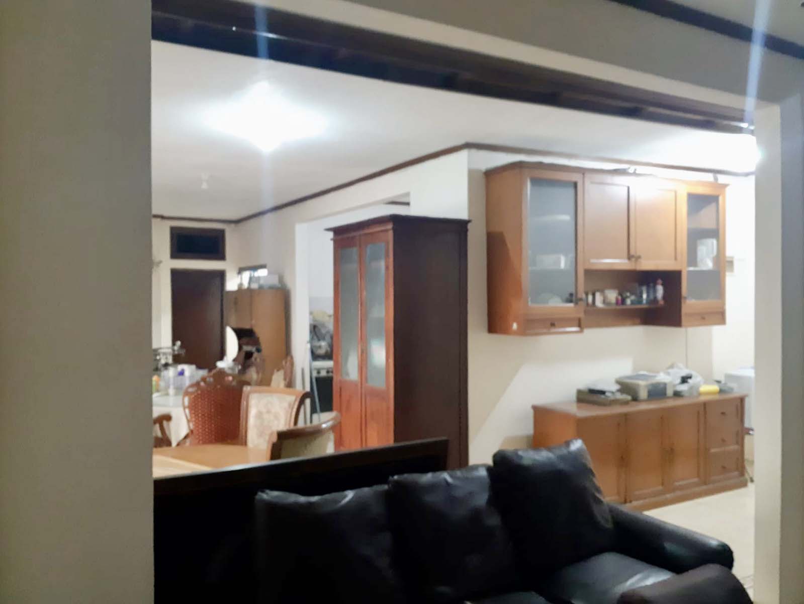Semi furnished, ruang keluarga, dapur bersih, air jetpump