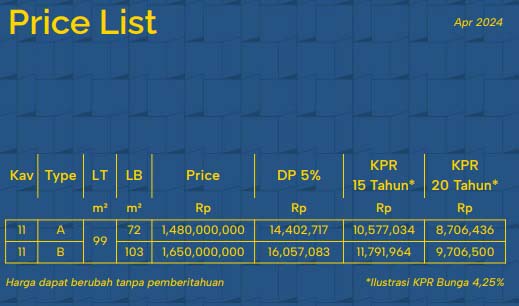 Harga mulai dari Rp 1,480 M s/d Rp 1,650 M, LT/LB mulai dari 99m²/72m² s/d 99m²/103m², strategis, hanya 15 menit ke RS Syarif Hidayatullah, UIN, stasiun MRT Lebak Bulus & Pondok Indah Mall