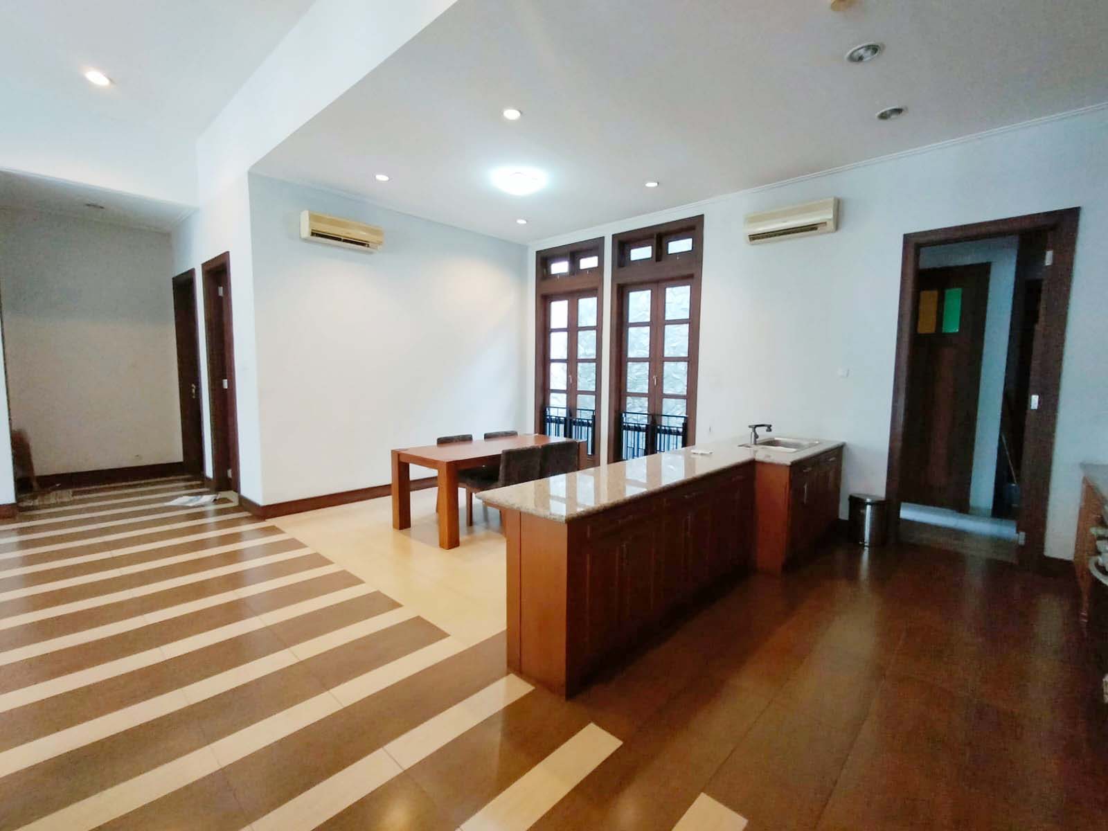 Semi furnished, ruang keluarga, dapur bersih/kotor, air jetpump, private swimming pool