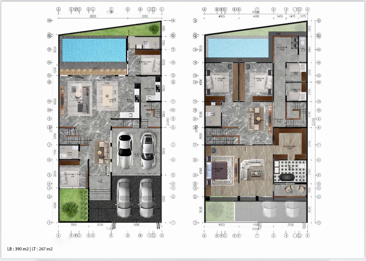 Ruang keluarga, dapur bersih/kotor, air PAM, swimming pool